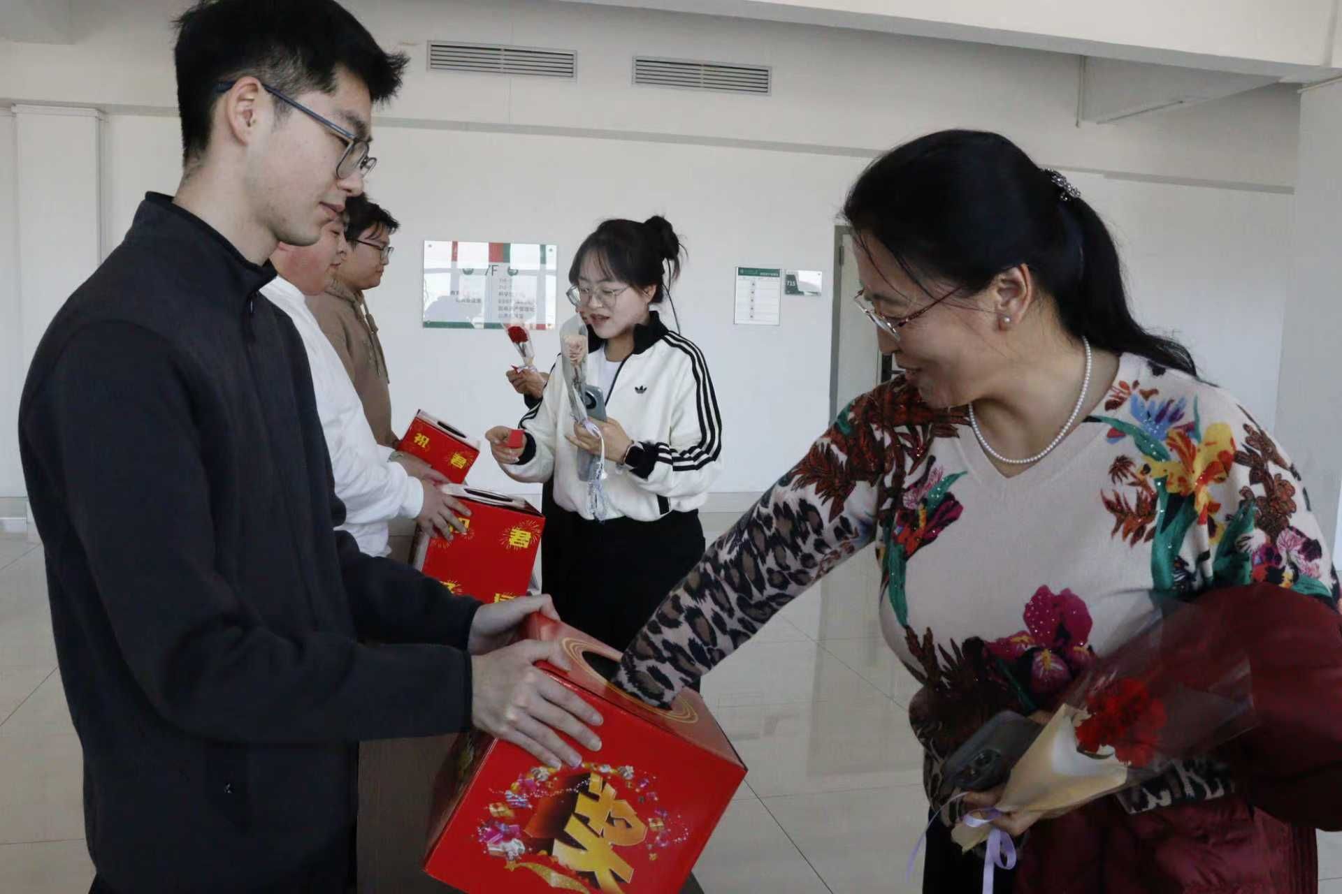 出其不意,自有惊喜。主楼八楼被欢声笑语所萦绕,贺景平副书记正带着对东农巾帼们的祝福为大家颁发奖品。活动工作组巧妙设计了三个奖项,每一个名字都藏着对女同胞们的深情期许,“芳华绽放奖”率先揭开面纱——一盒质感细腻的护手霜,紧接着是“聚力启程奖”——这个奖项别出心裁,抽中的幸运儿将获得一个美妆套盒,而最扣人心弦的当属“再攀高峰奖”——是每日增加营养的醇厚奶制品,活动现场氛围温馨热烈。